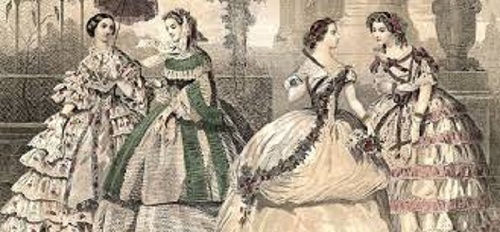 - En la década de 1860, los vestidos confeccionados eran sumamente anchos y las mujeres solían quedar atascadas en los marcos de las puertas.