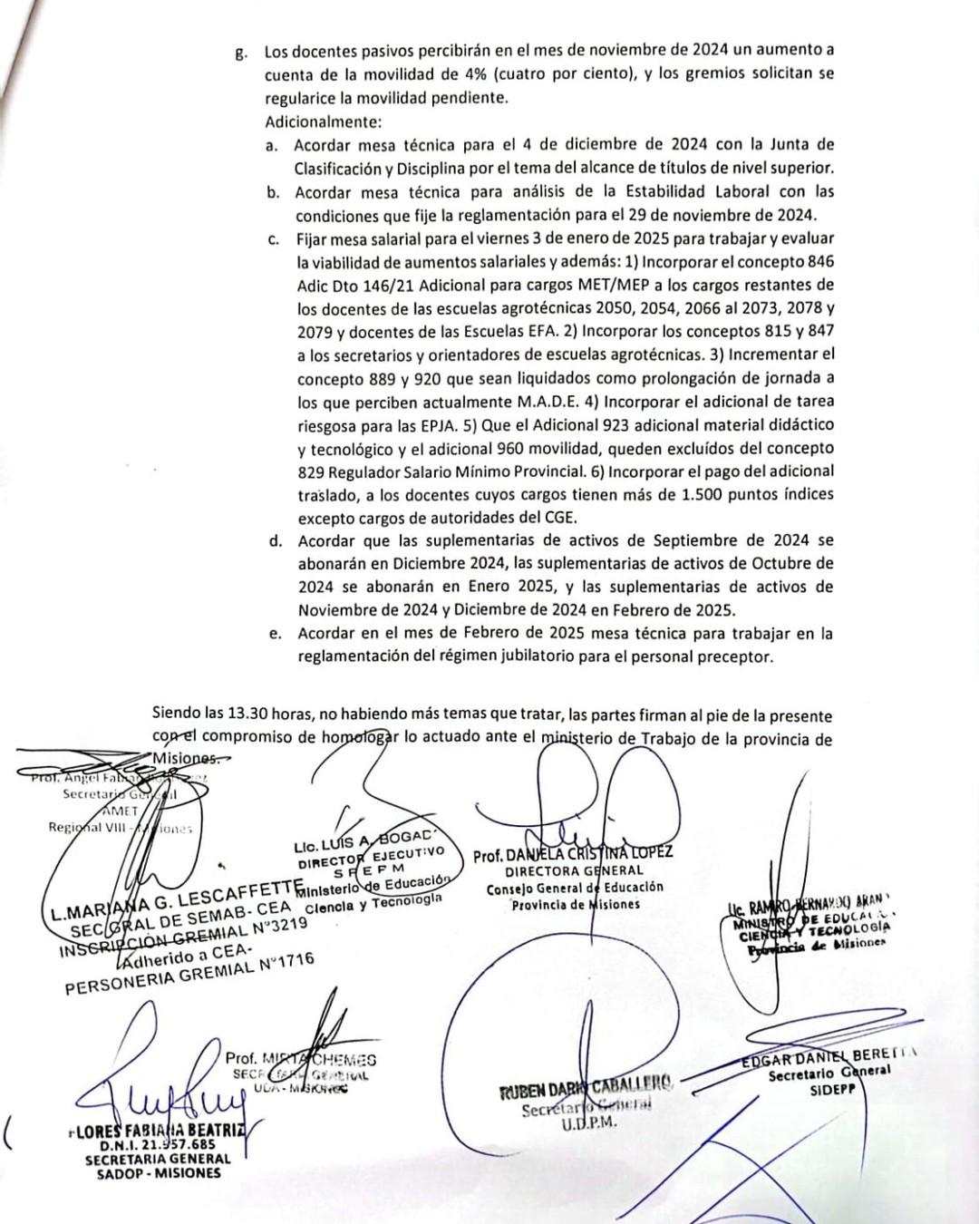 En el acta firmada, también se incluyó el compromiso de actualizar la “plana jubilatoria” para los docentes pasivos, con el objetivo de garantizar una movilidad acorde a los ajustes actuales.