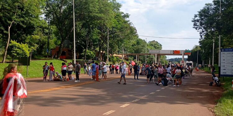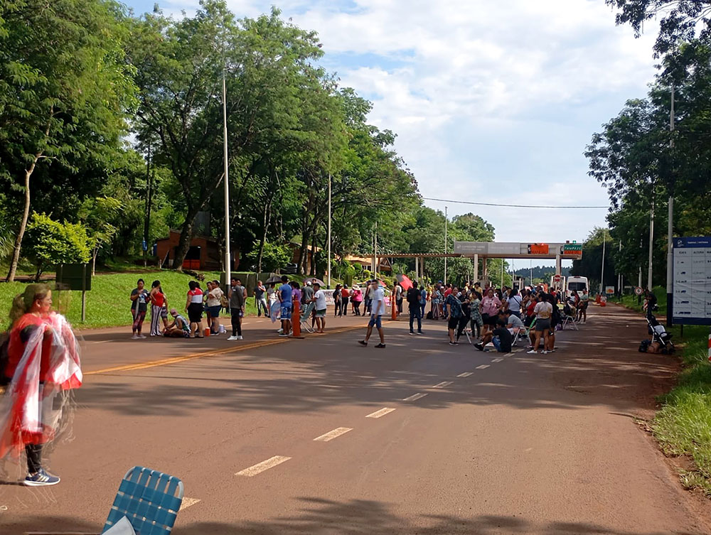 Un grupo de docentes del MPL llevan a cabo este jueves un corte total en la ruta nacional 12, a la altura del Peaje Colonia Victoria, en Eldorado.