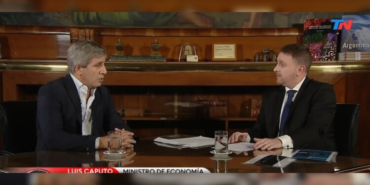 El ministro de Economía, Luis Caputo, dijo esta noche que se discute qué monto le prestará el FMI a la Argentina y sostuvo que la clave es que haya un desembolso grande lo más rápido posible.