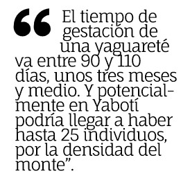 Detalló que en la Biósfera Yabotí “se debe construir un recinto previamente donde la podamos situar a la hembra y atraer al macho. Luego, cuando la hembra entre en celo y el macho, naturalmente, si todo va bien, si la teoría funciona, va a acercarse y en ese momento debemos poder colocarle un collar rastreador al macho, como estrategia de manejo y tenerlo monitoreado. Tenemos que saber dónde está para poder acompañar lo que sigue”.