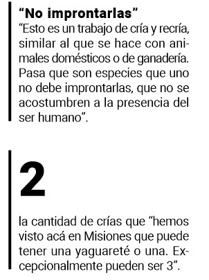 Para la segunda parte, remarcó que “ahí sí debemos tener una yaguareté de la zona y podemos recordar que a principios de año se capturó y se le puso el collar de seguimiento a Kunumi, una hembra nacida y criada en la selva paranaense. Por lo tanto, el seguimiento es diario y podría llegar a ser, porque no está hablado en la mesa técnica, la que dé inicio al proyecto, que sea la madre de las nuevas camadas de yaguaretés en la Reserva Yabotí”.