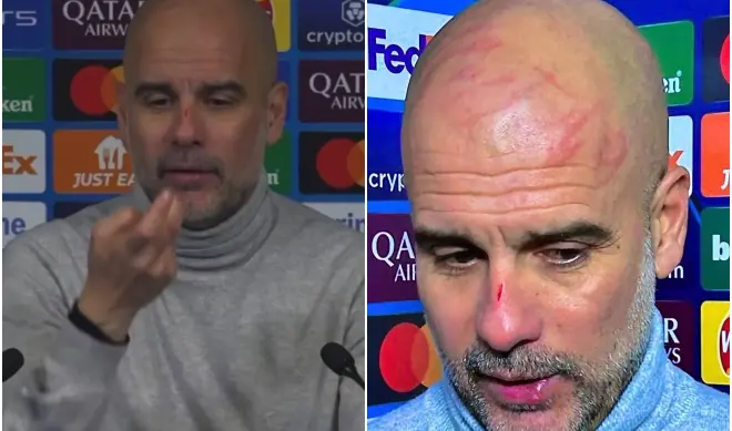 Una imagen que no tardó en hacerse viral y dar la vuelto al mundo: Pep Guardiola, tras el empate 3-3 del Manchester City este martes por la Champions League ante el Feyenoord (partido que ganaba 3-0 en el minuto 74), salió a hablar con la prensa con la cabeza llena de arañazos.