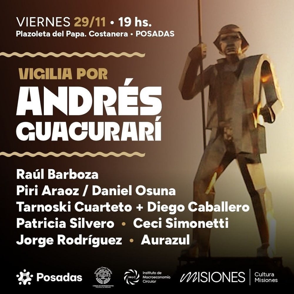 El 30 de noviembre se celebra el natalicio del Prócer Misionero y General del Ejército Argentino, Andrés Guacurarí y Artigas. Es por ello que el viernes 29, a partir de las 19 horas, se realizará una vigilia con músicos y bailarines con la actuación del músico Raúl Barbozaen la plazoleta del Papa Juan Pablo II de la costanera de Posadas. Entrada: libre.