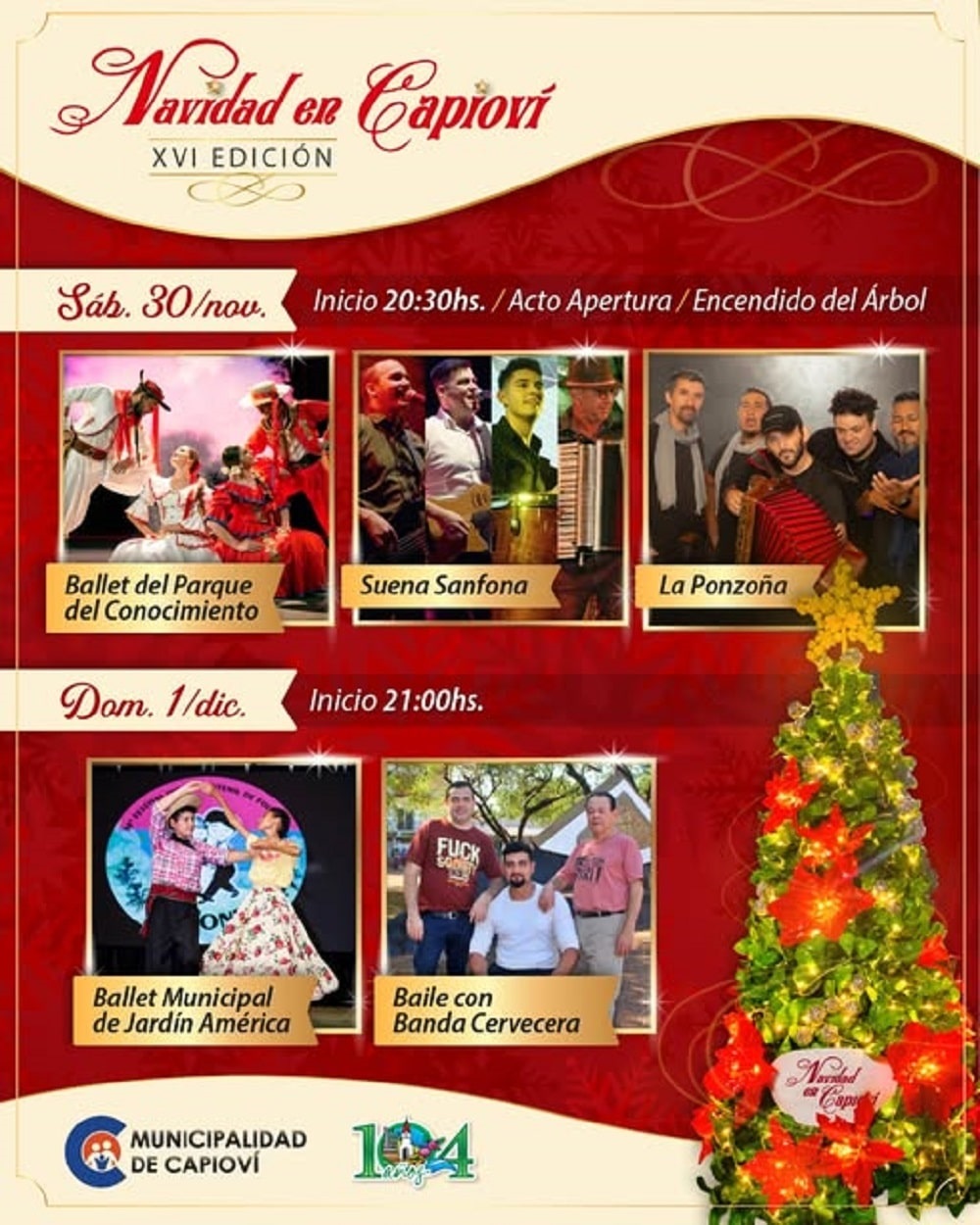 Este sábado a las 20.30 horas, Capioví enciende el árbol de navidad en la plaza de los Pioneros. Entrada: libre.