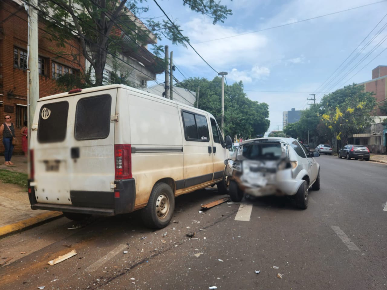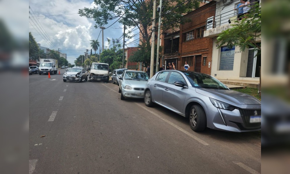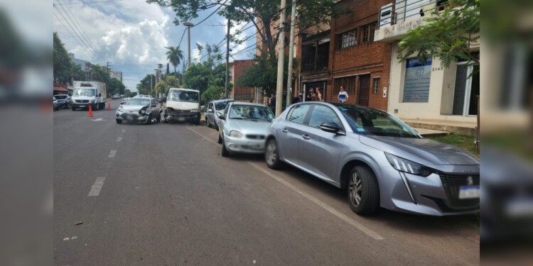 Un furgón colisionó con cuatro vehículos estacionados en Posadas: una persona resultó herida