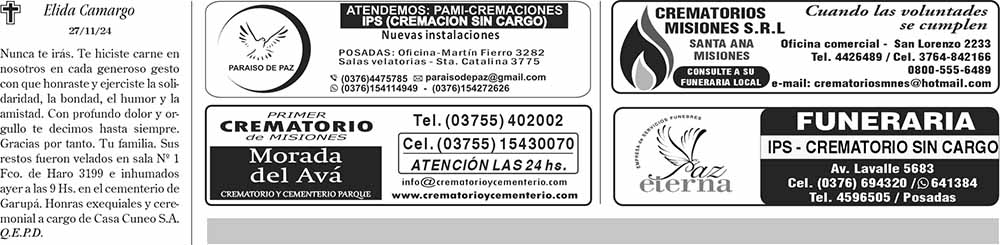 Fúnebres del Viernes 29 de Noviembre de 2024