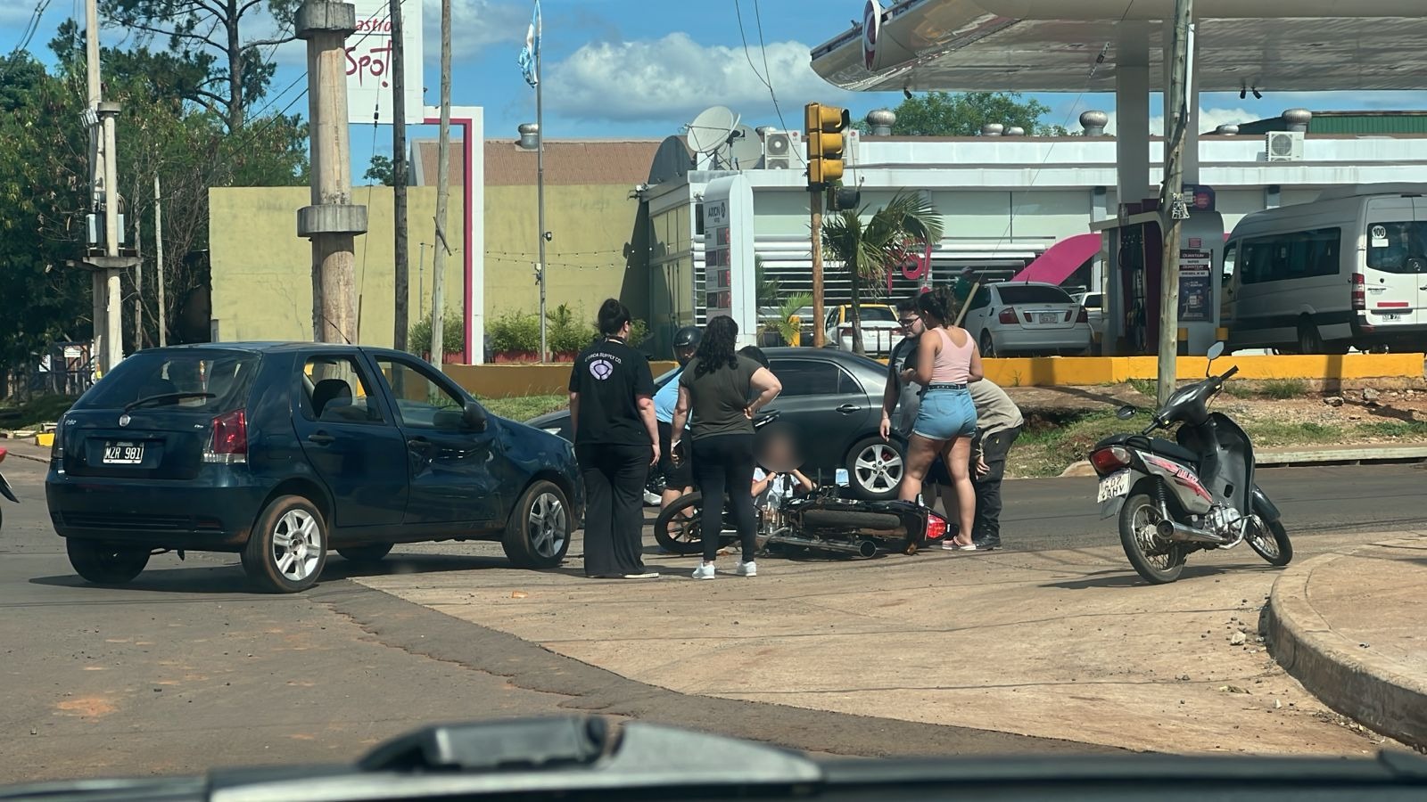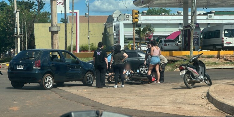 Un siniestro vial ocurrió este miércoles por la tarde en la intersección de las avenidas Quaranta y 147, en Posadas. El hecho involucró a un automóvil y una motocicleta que circulaban en la misma dirección por la colectora de la Avenida Quaranta.