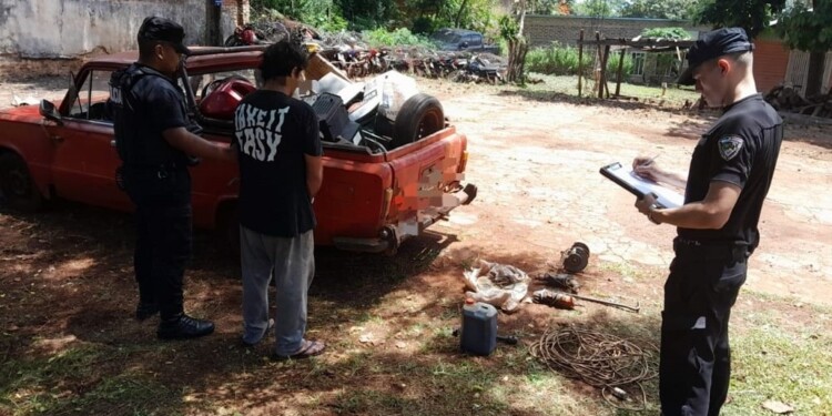 Ayer, efectivos de la policía capturaron a un hombre de 46 años y demoraron a un adolescente de 16, por robo de partes de vehículos en la localidad de Guaraní.