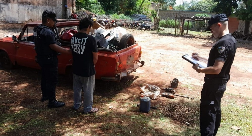 Ayer, efectivos de la policía capturaron a un hombre de 46 años y demoraron a un adolescente de 16, por robo de partes de vehículos en la localidad de Guaraní.