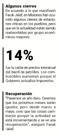 “Recientemente se homologó paritarias para avanzar en un incremento en los salarios hasta enero y no hemos sabido de cierre de estaciones, salvo algunas muy pequeñas que trabajaban a pérdida y fueron reabsorbidas por empresas más grandes”.