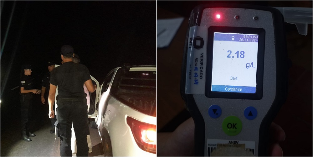 En Capioví, los agentes detuvieron a un hombre que manejaba una camioneta realizando maniobras riesgosas en la Ruta Nacional 12, kilómetro 1458. Este individuo arrojó un resultado positivo de 2,18 g/L en el test de alcoholemia.