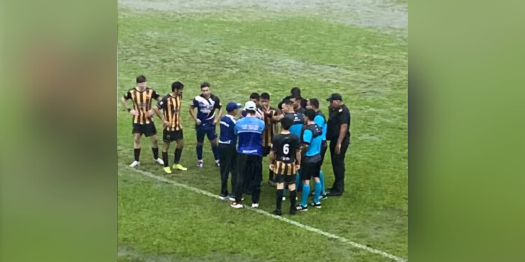 El encuentro estaba pautado para las 17, pero un fuerte temporal afectó gran parte de Corrientes, anegó el terreno de juego del conjunto local y el árbitro Leonardo Villanueva decidió suspenderlo cuando iban 21 minutos y estaban 0-0.