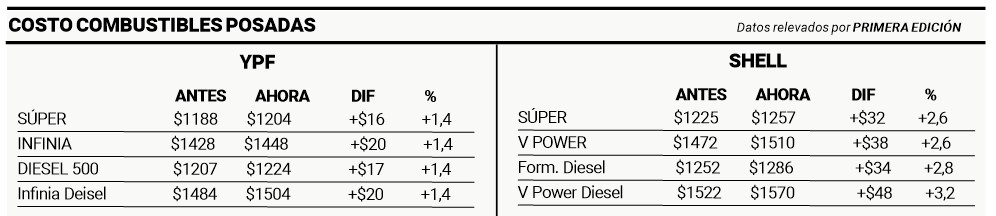 La empresa privada Shell, por su parte, quedó con precios en surtidor mucho más altos. El litro de súper ahora cotiza en Posadas a $1.257 y la de V Power a $1.510.