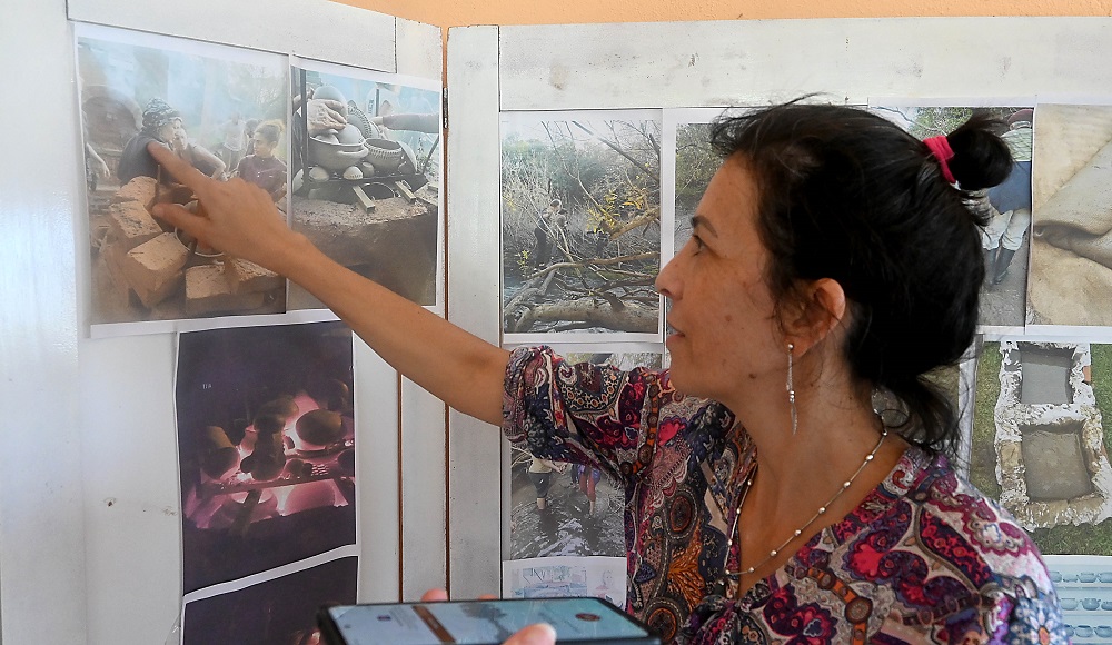 Susana Rodríguez, del colectivo “Entre mujeres y el barro”, expone los elementos que elabora a base de arcilla, junto a Edy, Lorena, Rocío y Hugo. Su aprendizaje se potenció en los talleres de cerámica que se dictaron en la biblioteca hace unos cinco años. “Ahora trabajamos de manera independiente, por cuenta propia. Hacemos de todo. Utensilios, mates, cuencos, platos, piezas escultóricas representativas de la zona, tratando de rescatar algunas técnicas guaraníes. Y después cada una le da su impronta”, explicó.