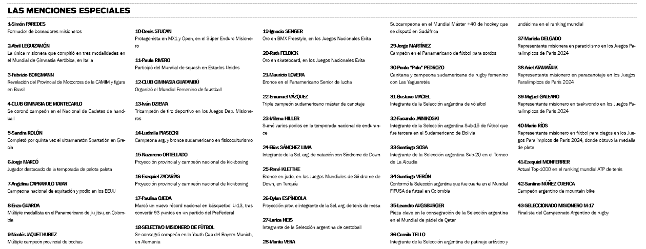 Y eso no será todo. Es que esta noche, los 145 deportistas invitados serán partícipes de los ocho sorteos que se realizarán durante la Fiesta, entre los que se cuentan cenas en el Hotel Bagú Urbano de Posadas y estadías en Puerto Iguazú para dos personas, cortesía del Instituto de Previsión Social (IPS); otra estadía con pasajes incluidos a Iguazú, gentileza del Ministerio de Turismo provincial; un Smart TV de 50 pulgadas, otorgado por la Municipalidad de Campo Grande; y el plato fuerte de la noche: un viaje para dos personas con estadía incluida en Camboriú, Brasil, cortesía de Río Uruguay y TransRío. ¿Quiénes serán los ganadores de la noche más esperada