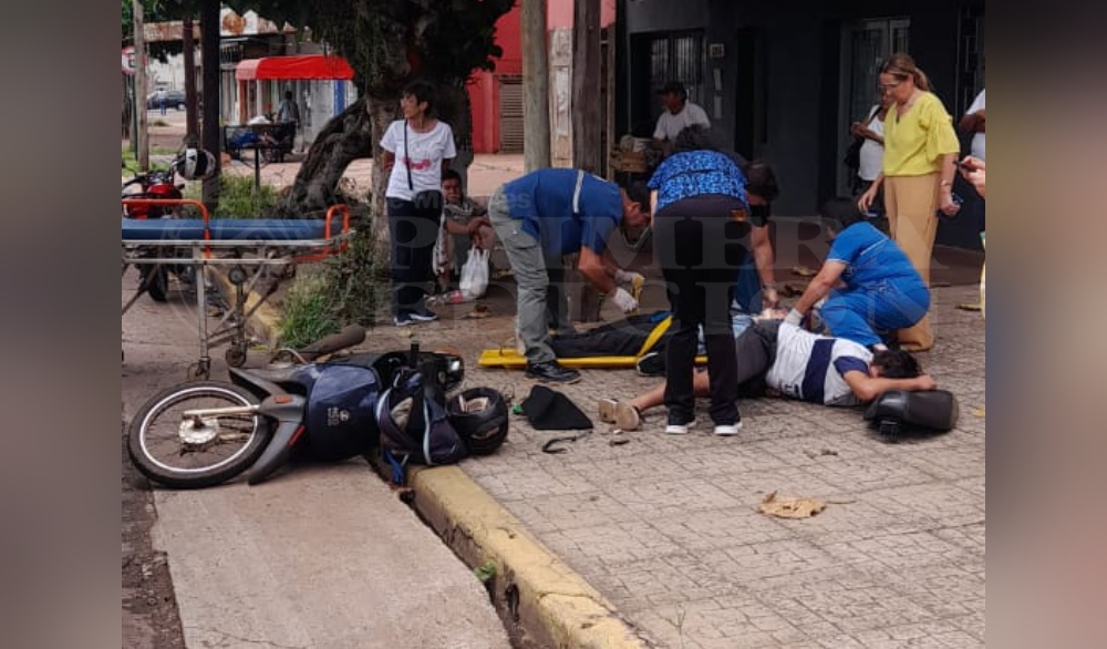 En el vehículo menor iban un hombre y una mujer, cuyos datos no trascendieron, que cayeron al asfalto con lesiones y fueron rápidamente socorridos.