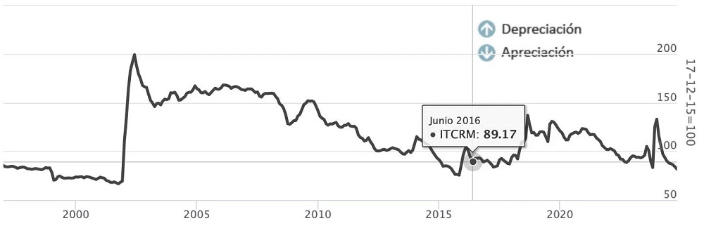 Corría diciembre de 1998 y el peso estaba casi tan sobrevalorado como hasta ahora, según el tipo de cambio real multilateral que elabora el Banco Central. Incluso ahora está un 1% más apreciado que entonces. Y al mes siguiente en Brasil el dólar saltó de 1,20 a 2 reales.