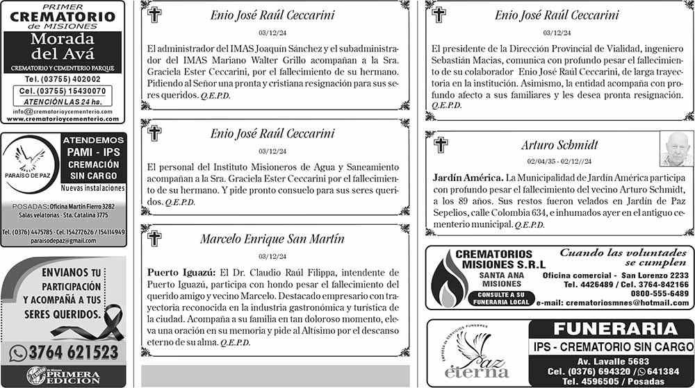 Fúnebres del Miércoles 4 de Diciembre de 2024