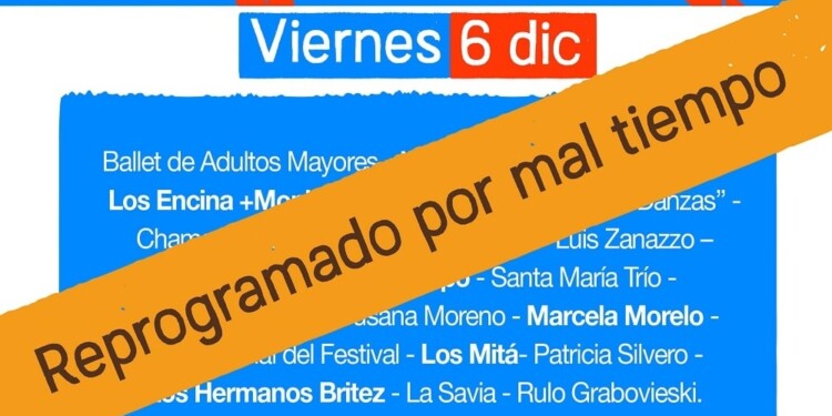 En un comunicado publicado en las redes del Festival, los organizadores anunciaron “Atención vecinos, para cuidar la seguridad de todos los vecinos y de los trabajadores del festival reprogramamos la segunda noche del festival por pronóstico de lluvia. Les solicitamos a todos que guarden sus entradas. Pronto les estaremos dando más información”.