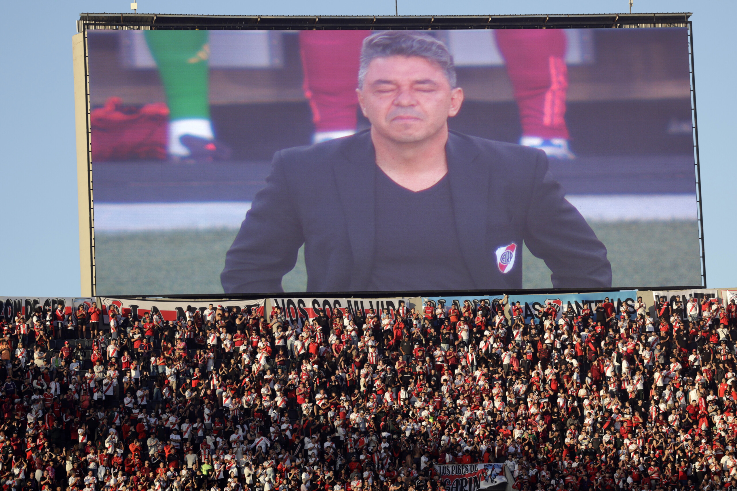 Además, los seguidores de River desplegaron banderas en diversos sectores del estadio, con imágenes de Gallardo como DT en su primer ciclo en el club. Estos tributos se sumaron a las palabras de despedida emitidas por la institución y su presidente, Jorge Brito, a través de las redes sociales oficiales.