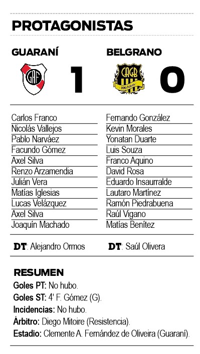Y después de tantas malas, una buena para Guaraní Antonio Franco. El conjunto de Villa Sarita dejó los problemas fuera de la cancha y por la tercera fase del Torneo Regional Federal Amateur, superó por 1-0 a Belgrano de Curuzú Cuatiá.