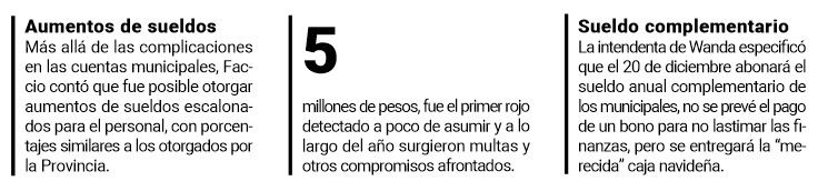 Respecto de la agenda para el año entrante, Faccio contó que se verá obligada a hacer algunos cambios en su gabinete: su secretaria de Hacienda y Recaudaciones quien dará un paso al costado para dedicarse a su actividad privada y será reemplazada por quien actualmente ocupa la dirección de Catastro.