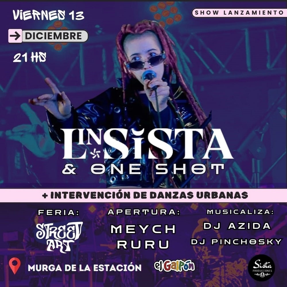 Previo al show de Lin Sista, los DJ’s Azida y Pinchosky se encargarán de la musicalización, acompañando la feria de emprendedores Street Art, donde el público podrá disfrutar de productos y obras de arte urbano.
