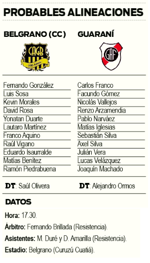 El encuentro se pondrá en marcha a partir de las 17.30, en el terreno del combinado correntino. El designado por el Consejo Federal para impartir justicia en este choque es Fernando Brillada, de Resistencia.
