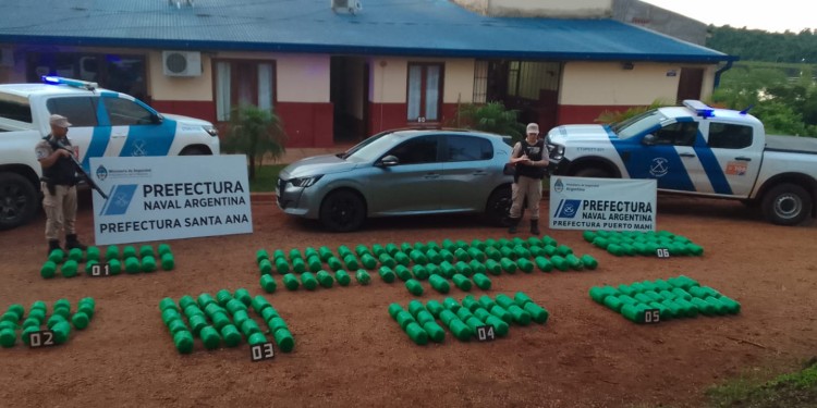 Un operativo realizado por la Prefectura Naval Argentina en Misiones concluyó con el hallazgo de más de 223 kilos de marihuana, valuados en más de 586 millones de pesos. El procedimiento tuvo lugar en las localidades de Gobernador Roca y Santa Ana, tras una persecución que comenzó durante un patrullaje terrestre.