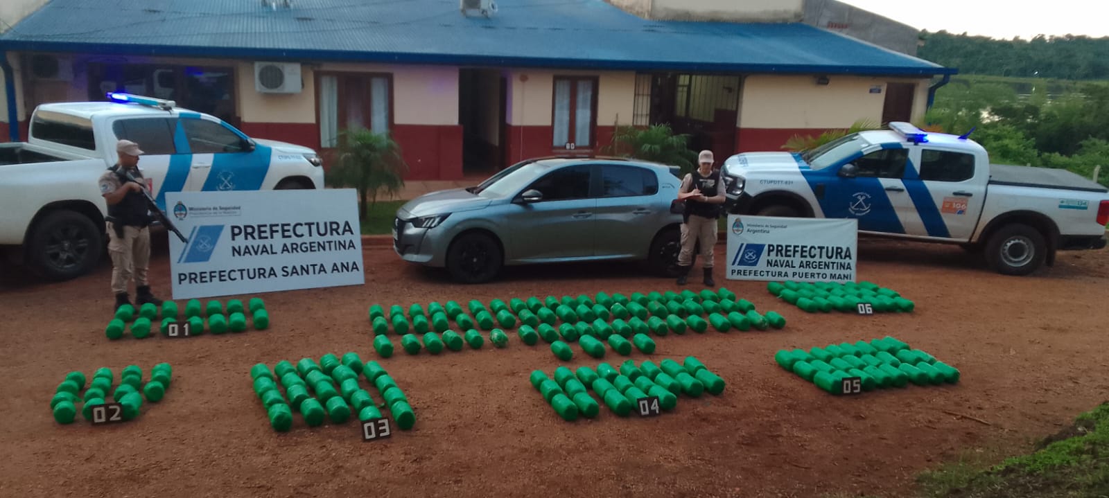 Un operativo realizado por la Prefectura Naval Argentina en Misiones concluyó con el hallazgo de más de 223 kilos de marihuana, valuados en más de 586 millones de pesos. El procedimiento tuvo lugar en las localidades de Gobernador Roca y Santa Ana, tras una persecución que comenzó durante un patrullaje terrestre.