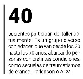 El taller reunió a un grupo diverso, con edades que van desde los 30 hasta los 70 años, abarcando personas con distintas condiciones, como secuelas de traumatismos de cráneo, Parkinson o ACV. Actualmente participan alrededor de 40 pacientes junto con sus familiares.