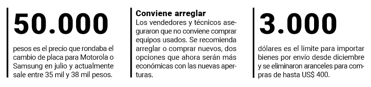 En julio un cambio de placa y pantalla para un modelo de gama media de las marcas como Motorola o Samsung (que lideran el mercado) rozaba los $50.000 mientras que actualmente oscila entre los $35.000 y los $38.000.