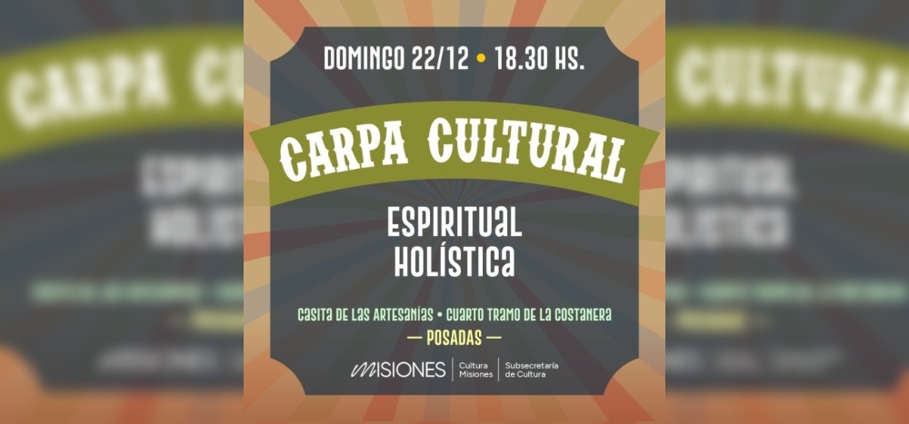 Este domingo, a partir de las 18.30 horas, se lanzará la “Carpa Cultural Espiritual Holística” en el cuarto tramo de la costanera de Posadas. Esta nueva actividad cultural, promovida por la Secretaría de Estado de Cultura de la Provincia y la Subsecretaría, a cargo de Gabriela Amira Rojas, se centrará en la conexión integral del ser humano, abarcando mente, cuerpo y espíritu.