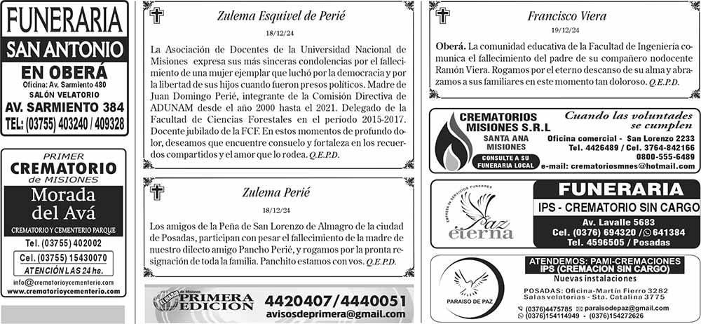 Fúnebres del Viernes 20 de Diciembre de 2024