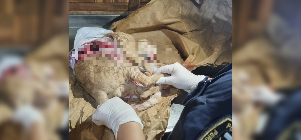 De acuerdo a la necropsia, el felino estaba de buen estado corporal, pero tenía una herida de gran tamaño que abarca toda la piel y músculos del abdomen y tórax, haciendo que los órganos internos se exterioricen. Además, tenía un orificio en la frente, entre ambos ojos, lo que se presume es la entrada de un proyectil. Y por eso, se solicitó una placa de la cabeza para determinar si había un proyectil en su interior.