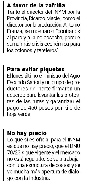 La confusión surgió luego de que, en algunos medios digitales, se informara que el INYM y la Mesa de Enlace habían quitado respaldo a los $450 por kilo de hoja verde propuestos como parte de un acuerdo para levantar los bloqueos que, desde hace semanas, llevan adelante productores en diversas rutas de la provincia.