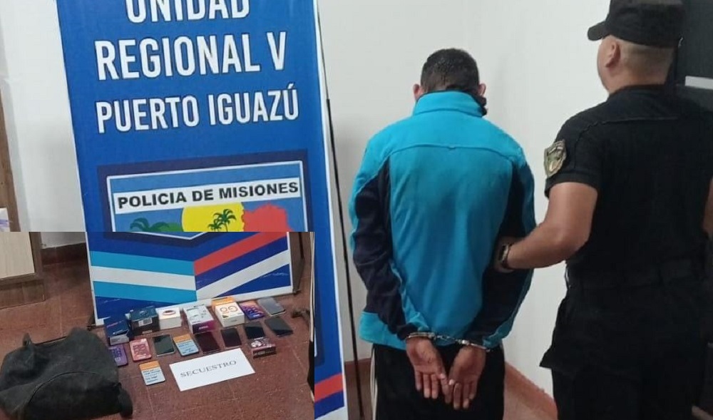 Un hombre de 37 años fue detenido este domingo en Puerto Iguazú, pocos minutos después de haber roto la vidriera de un local comercial para sustraer numerosos dispositivos electrónicos.