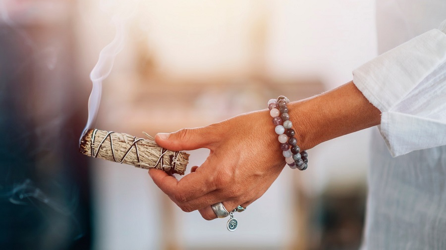 Busca un lugar tranquilo a solas y en silencio para conectar con el ser más espiritual que habita en ti. Si puedes usar algún cuarzo o amatista, lo colocas en un altar o dejas que repose sobre tu mano. Es tu portal, la llave que abre un canal de conexión con tu ser espiritual, aquél que sabe la verdad, que te ayuda a escoger y ver. Sahúma para purificar la energía. Te propongo utilizar un sahumerio de salvia para conectar con su poder purificador, su humo sagrado te protegerá de las emociones negativas de todo aquello que necesitas soltar, te brindará claridad sobre tu situación actual y expandirá tu mente para atreverte a caminar diferente.