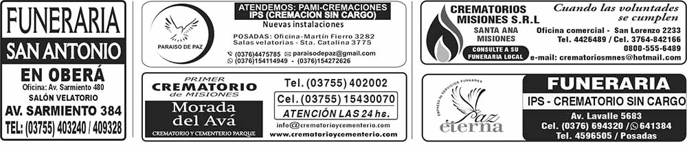 Fúnebres del Jueves 26 de Diciembre de 2024