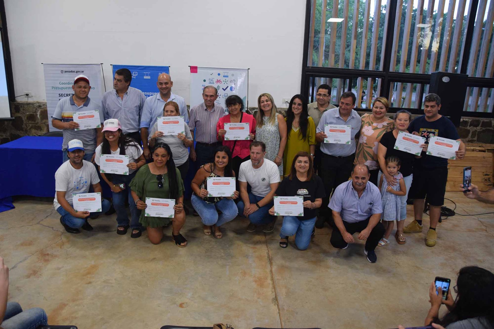 El acto contó con la participación del intendente Leonardo Stelatto; el secretario de Planificación Estratégica y Territorial, Marcelo Manzur; la coordinadora del programa, Thamara Ramos; el escribano municipal Ángel Giudice; los delegados de las delegaciones barriales y los vecinos autores de las propuestas ganadoras.