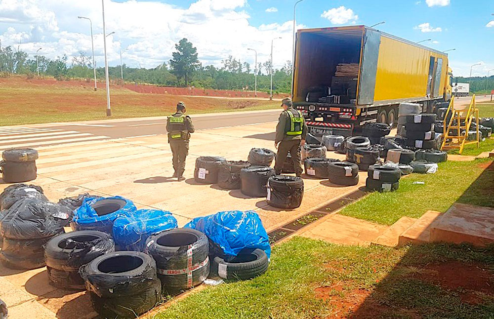 El transporte interceptado en el puesto de control Urugua-í de la ruta nacional 12, contenía 104 cubiertas para camión, camioneta y automóviles. Pero también cajas con productos de la marca “Stanley”, termos, vaso y jarras.