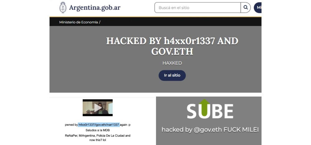 Los ciberdelincuentes, identificados como “h4xx0r1337 $gov.eth”, dejaron mensajes provocativos como “really? hacked again!?” y “fuck Milei” en el pie de página del portal. Este hacker es conocido en el ámbito de la ciberseguridad por su historial de infiltraciones y por exponer fallas estructurales en sistemas informáticos.