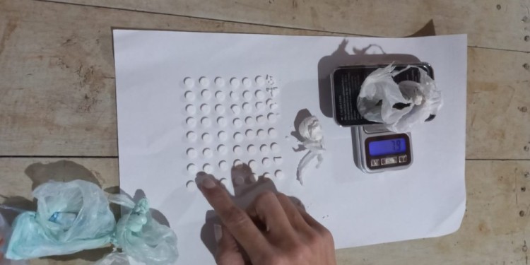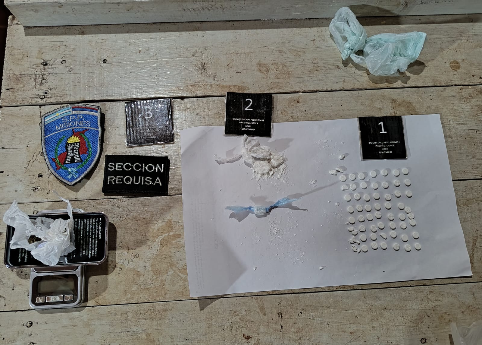 Entre los objetos encontrados se halló un envoltorio de polietileno con 56 pastillas, otro que contenía una sustancia verde amarronada, presumiblemente cannabis sativa, y dos envoltorios con una sustancia compacta de color blanquecino.