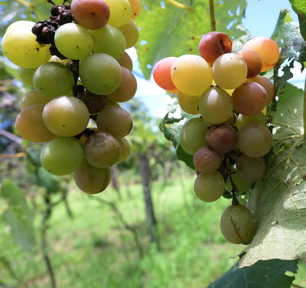 A los pocos días de asomar la temporada, los racimos desaparecen. “A esta altura casi no se encuentran cachos de uva, están comidos por las avispas, las abejas, y las aves. Las mariposas también revolotean por la noche y hacen una pequeña incisión en la fruta, dejando un punto negro, desde donde empieza a descomponerse”.