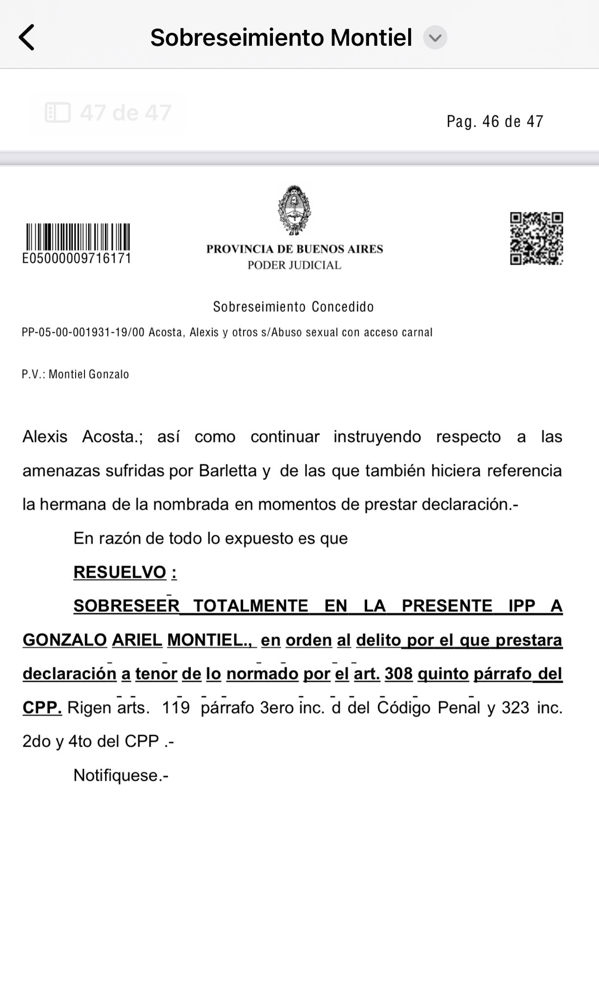 La causa, caratulada como “abuso sexual con acceso carnal agravado por la participación de dos o más personas”, fue investigada por la Unidad Funcional 3 de Lomas de Zamora. Finalmente, la Justicia dictó el sobreseimiento de Montiel, concluyendo que no se encontraron elementos suficientes para sostener la acusación.