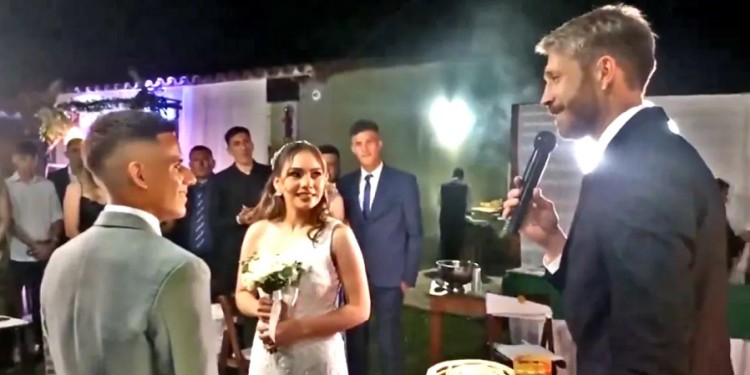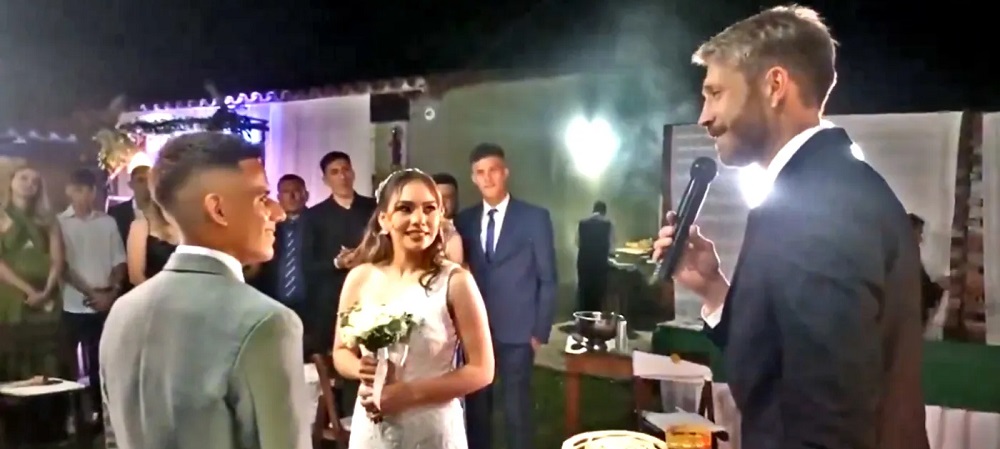“Va a ser un matrimonio sin manchas y joven, por siempre. El anillo simboliza que no tiene principio ni fin, sino que es eterno como tu vida, señor. Así como tu vida es eterna, papá, este matrimonio va a ser eterno. En el nombre poderoso de Jesús, amén”, fueron las palabras que pronunció el misionero nacido en 25 de Mayo; lo que causaron los aplausos de todos los invitados.