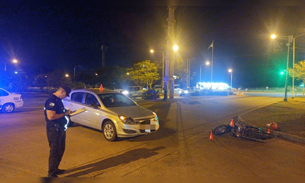 El siniestro ocurrió a las 20:40 horas, cuando un automóvil que circulaba en sentido Este-Oeste por la calle Zorzales impactó a una motocicleta que transitaba en dirección contraria. La colisión se produjo al cruzar la intersección con la avenida, cuando el automóvil ingresó al carril de circulación Norte-Sur.