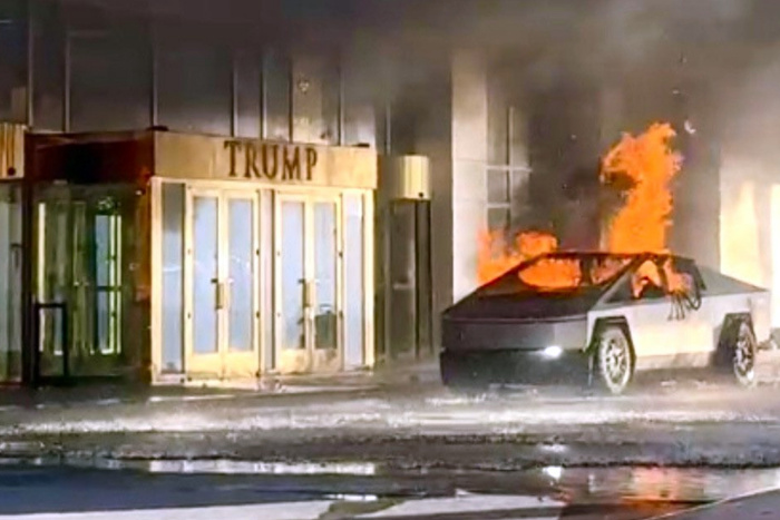 El Cybertruck se acercó a la parte delantera de la entrada cuando empezó a salir humo y ocurrió una explosión, explicó el alguacil del condado de Clark, Kevin McMahill, quien agregó que la persona dentro del vehículo falleció.