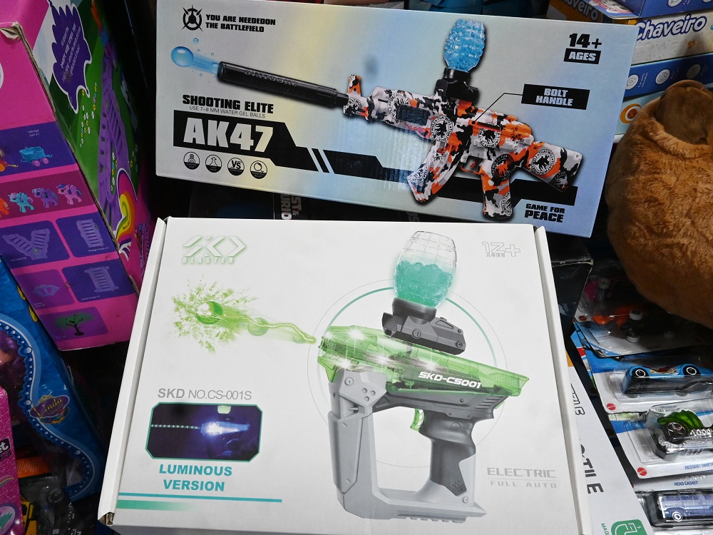 “Llegaron muchos modelos con precios moderados hasta los más caros; algunos son con pilas, recargables, con baterías, de disparo continuo; y es muy pedido ya que no lastima a diferencia de las pistolas que tienen balines, por ejemplo. Esto si te pega en cualquier parte del cuerpo no lastima, por eso fue muy pedido y vendido ya en Navidad; y ahora en Reyes creo que se va a repetir la tendencia”, añadió el comerciante.